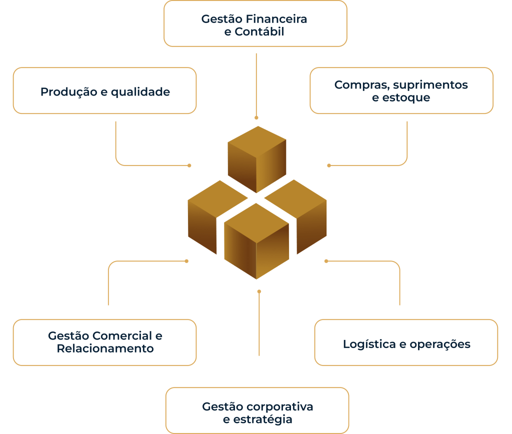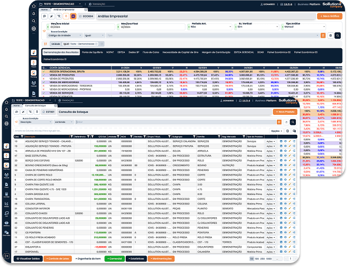 A plataforma cobre todas as áreas da gestão empresarial: Fiscal, Contábil, Financeira, Comercial, Produção, Estoque, Compra, Projetos e Controladoria, garantindo integração total e eliminando retrabalhos.
