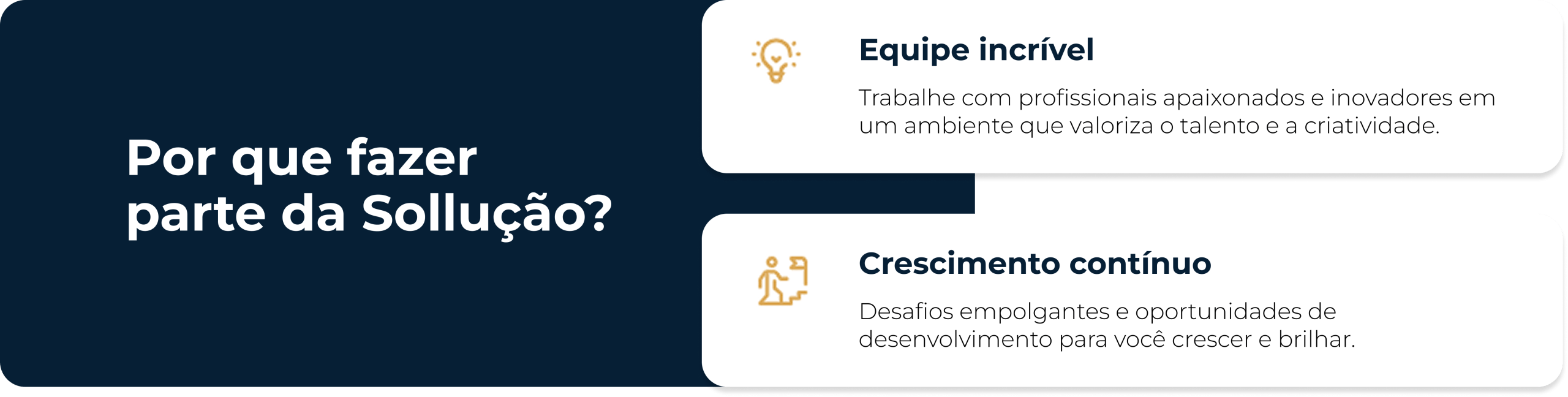A Sollução é feita de pessoas que entendem o desafio de viver a Reforma Tributária todos os dias. Aqui, cada desafio é uma oportunidade real de criar o extraordinário. Se você é movido por inovação e quer trabalhar ao lado de talentos que lideram a transformação do mercado, o seu lugar é aqui!